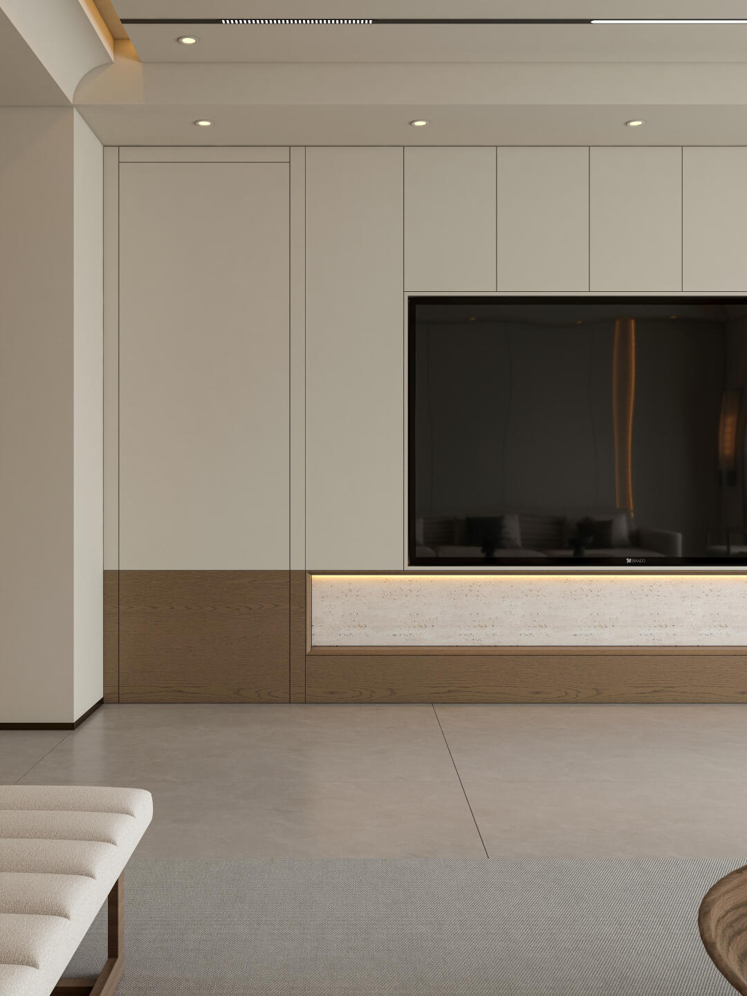 第一款,简约高级感直接拉满!整体以柔和浅色调为主,搭配木质元素,温暖又大气。柜体设计简洁利落,无多余装饰却质感十足,下方灯带柔和,氛围感拉满,看电视超有沉浸感,颜值与实用并存。