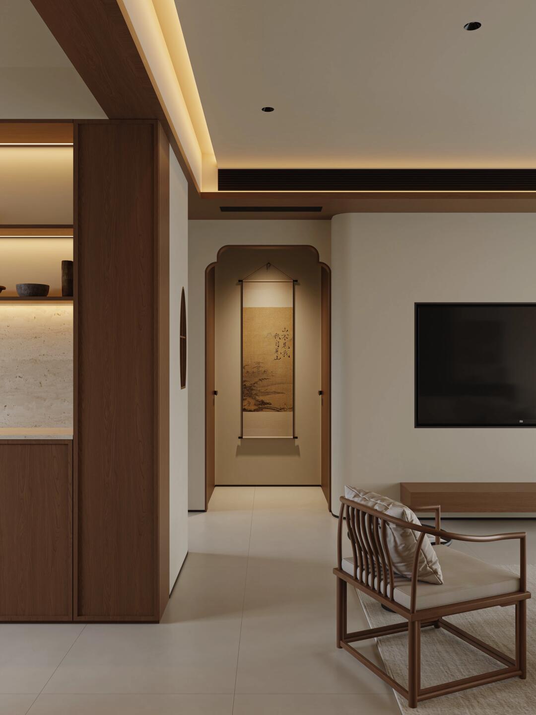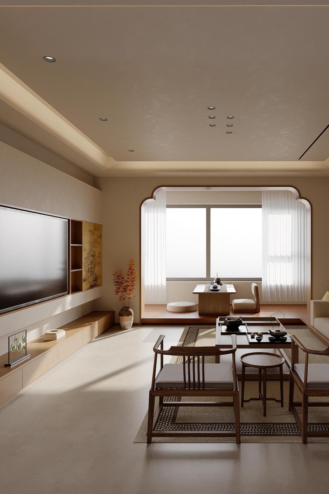 本案完美诠释宋氏美学,将其雅致与诗意融入现代家居。色调选取温润的原木色与柔和的米白色为主调,搭配和谐,营造出宁静、舒缓且极具质感的空间氛围,仿若能让人卸下尘世喧嚣。