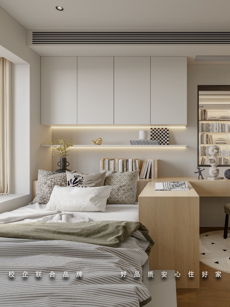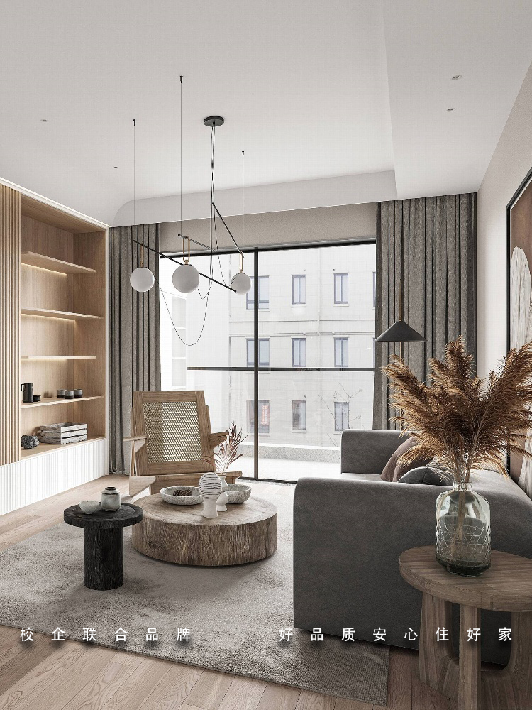 色彩选取浅木色、浅灰等低饱和度色调,营造出简洁、通透的视觉效果,一定程度上拓展了空间感。软装搭配简洁且贴合整体风格,客厅的木质家具、造型简约的灯具,与厨房简约的橱柜、卧室的实用置物架等相互呼应,让空间更具整体性。