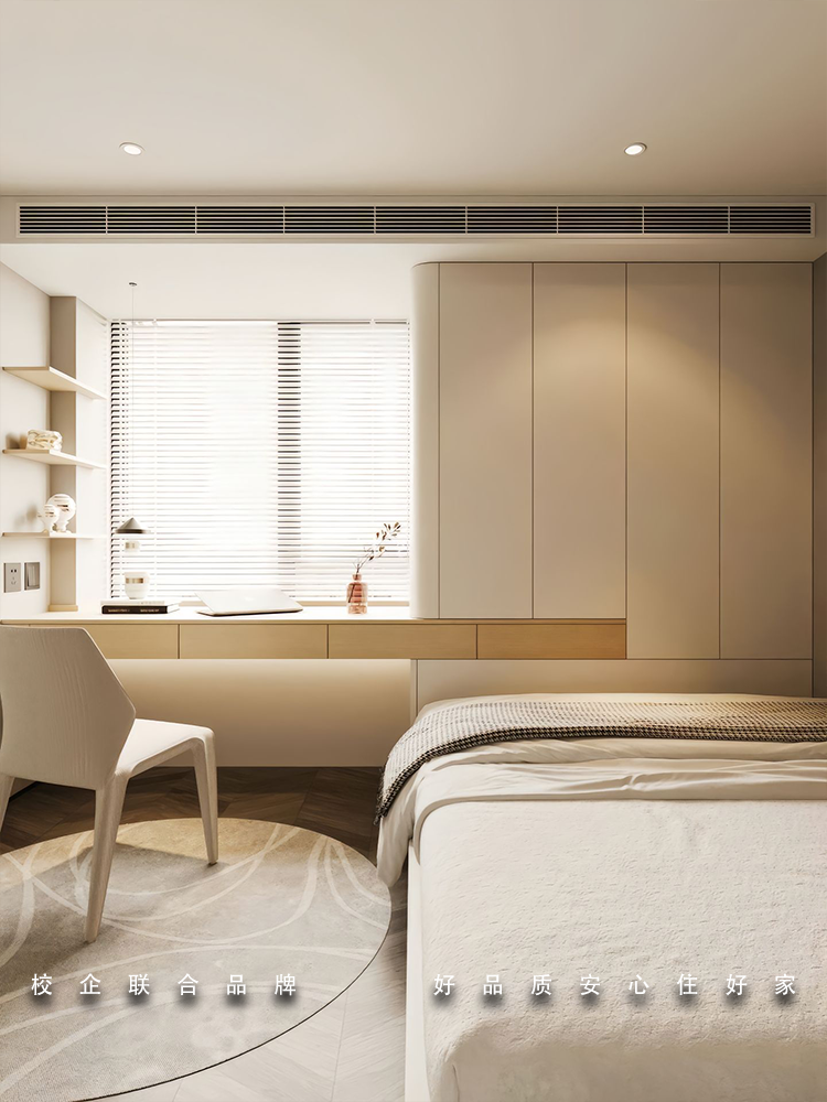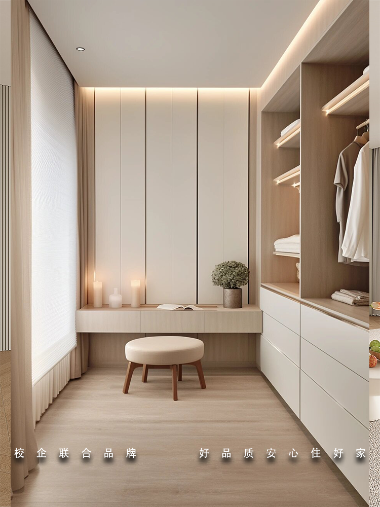 卧室里,定制衣柜与梳妆台无缝衔接,每一处细节都尽显精致与实用。