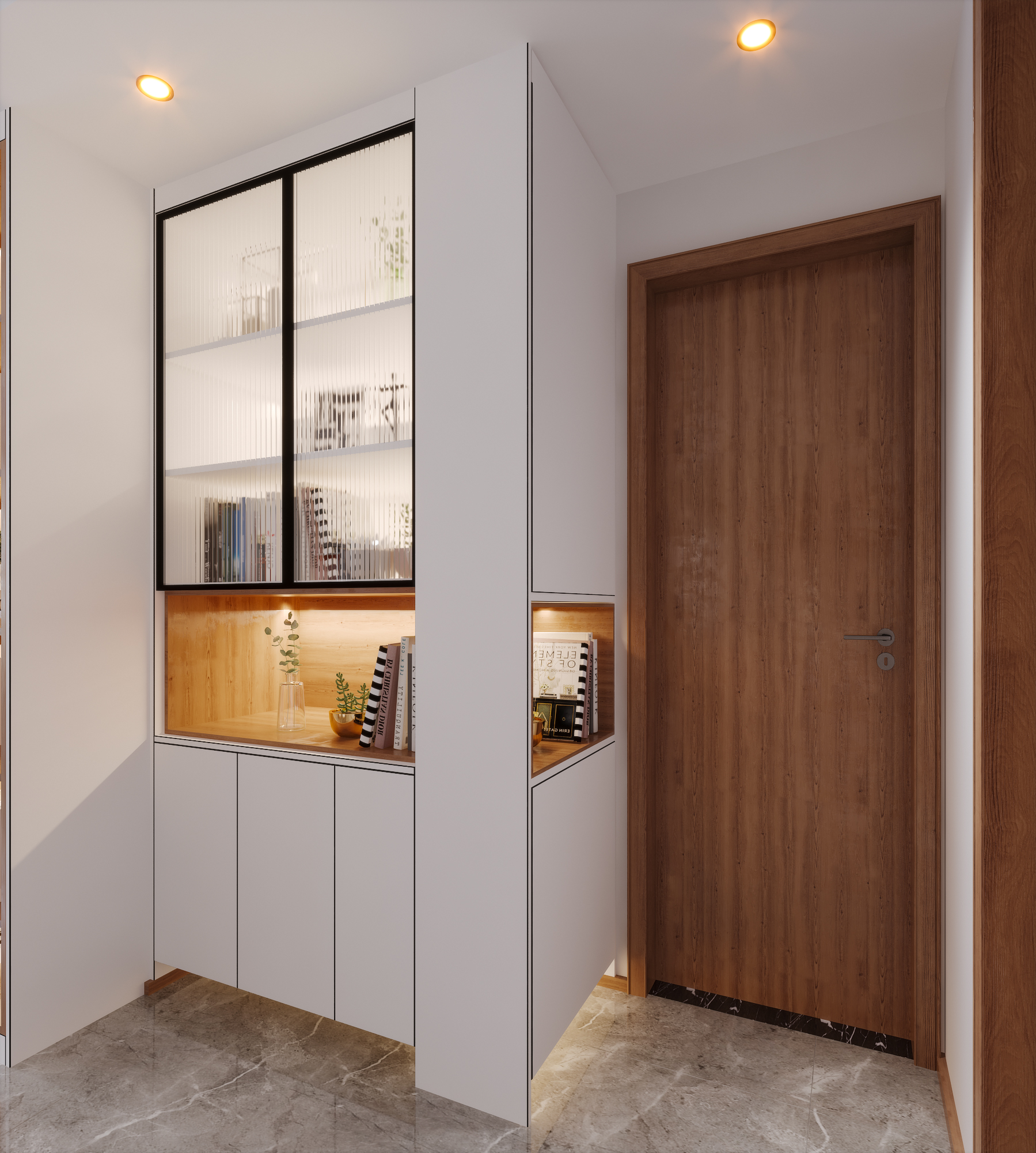 ✅现代简约风:半透玻璃柜 + 暖光灯带,收纳和颜值双在线