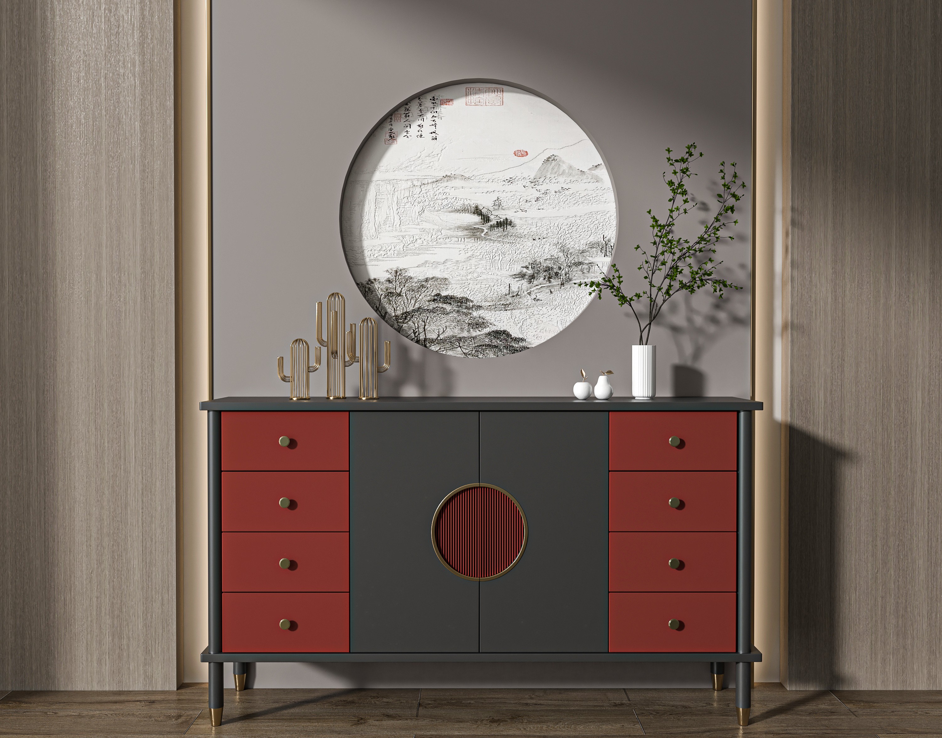 ✅新中式风:红黑撞色 + 金属圆纹,东方韵味直接拉满