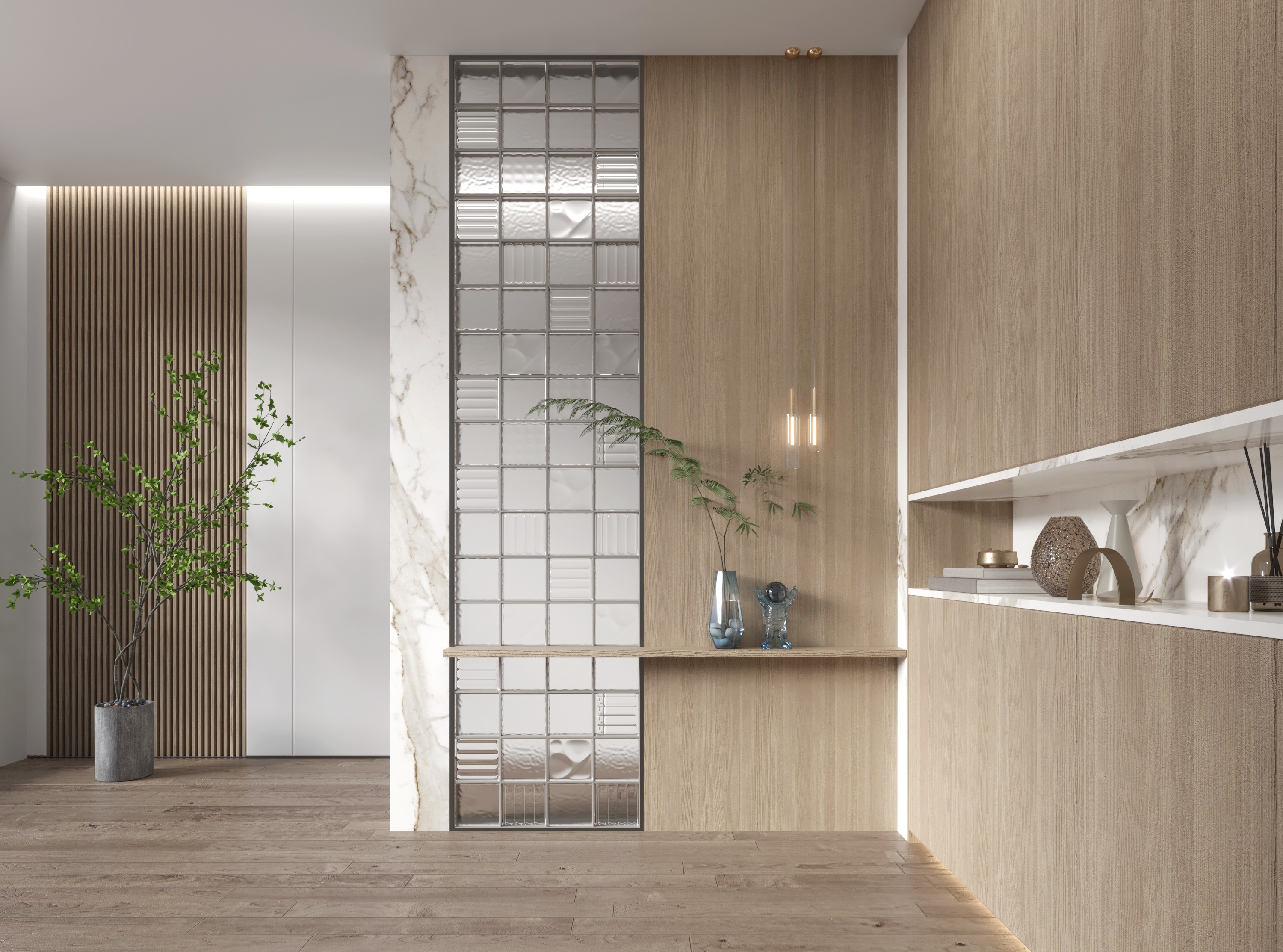 ✅通透隔断风:木饰面 + 长虹玻璃,划分空间还不挡光