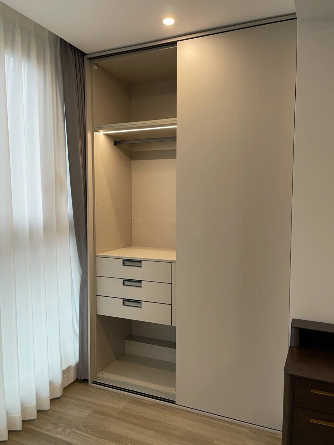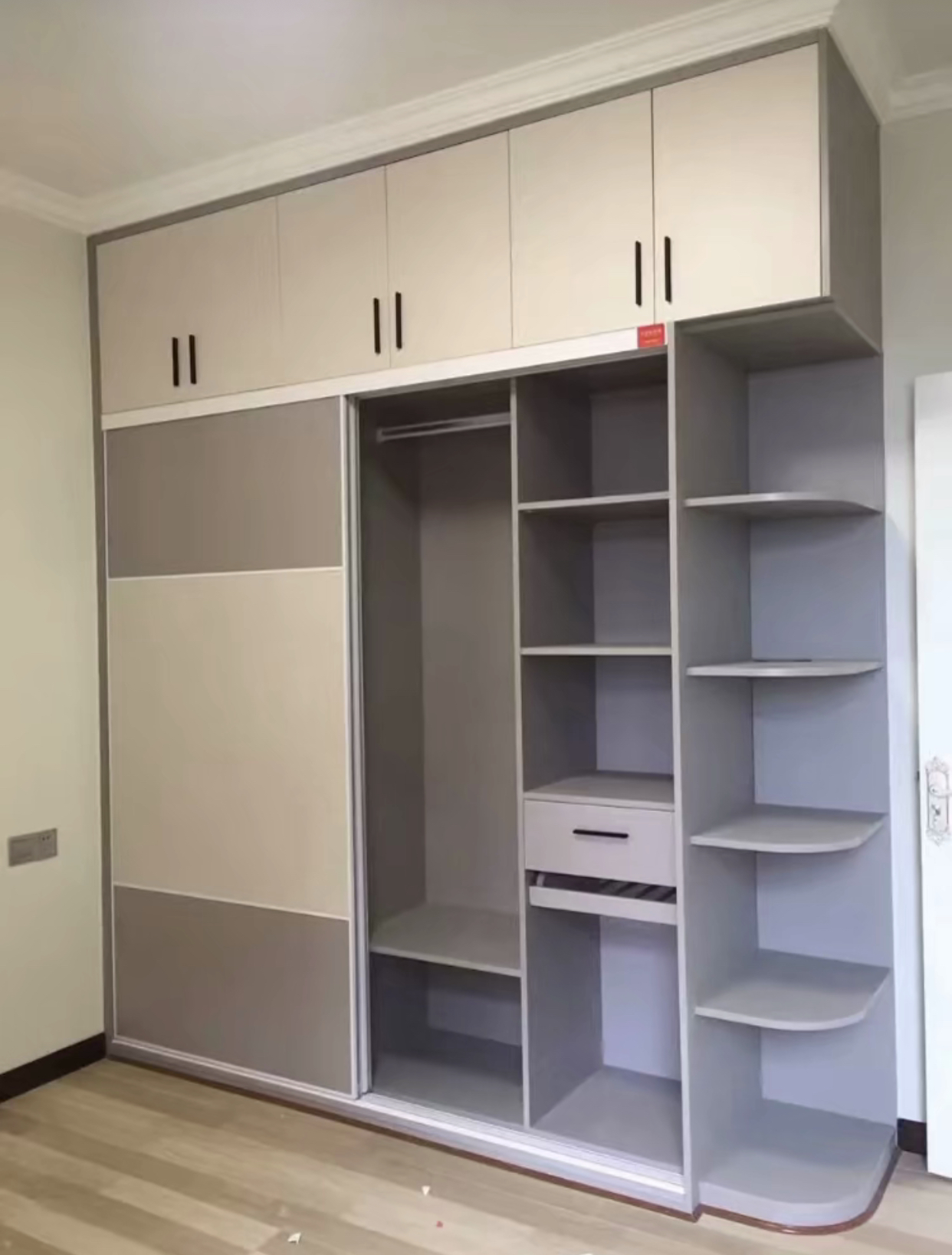 从双色拼接的现代款,到顶柜一体的实用款,再到极简无拉手的轻奢款,每款都完美适配小空间。推拉设计不占开门空间,最大化利用卧室面积;分区收纳格局,让衣物、配饰各得其所,颜值与实用性双在线。